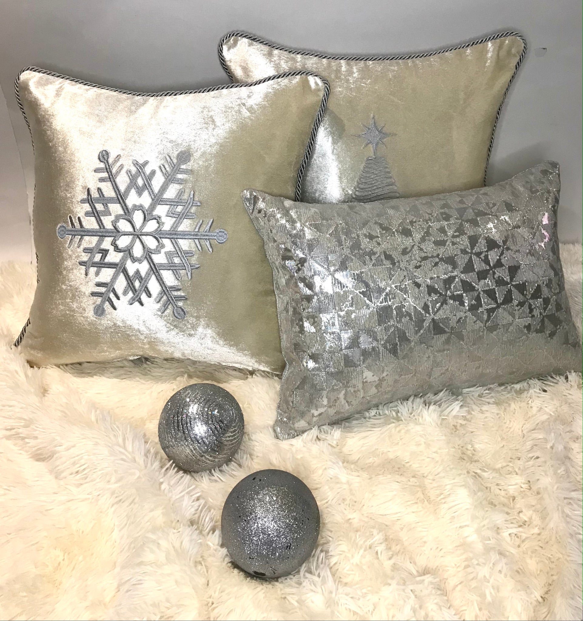 Cojín Navidad Crema Copo Plata