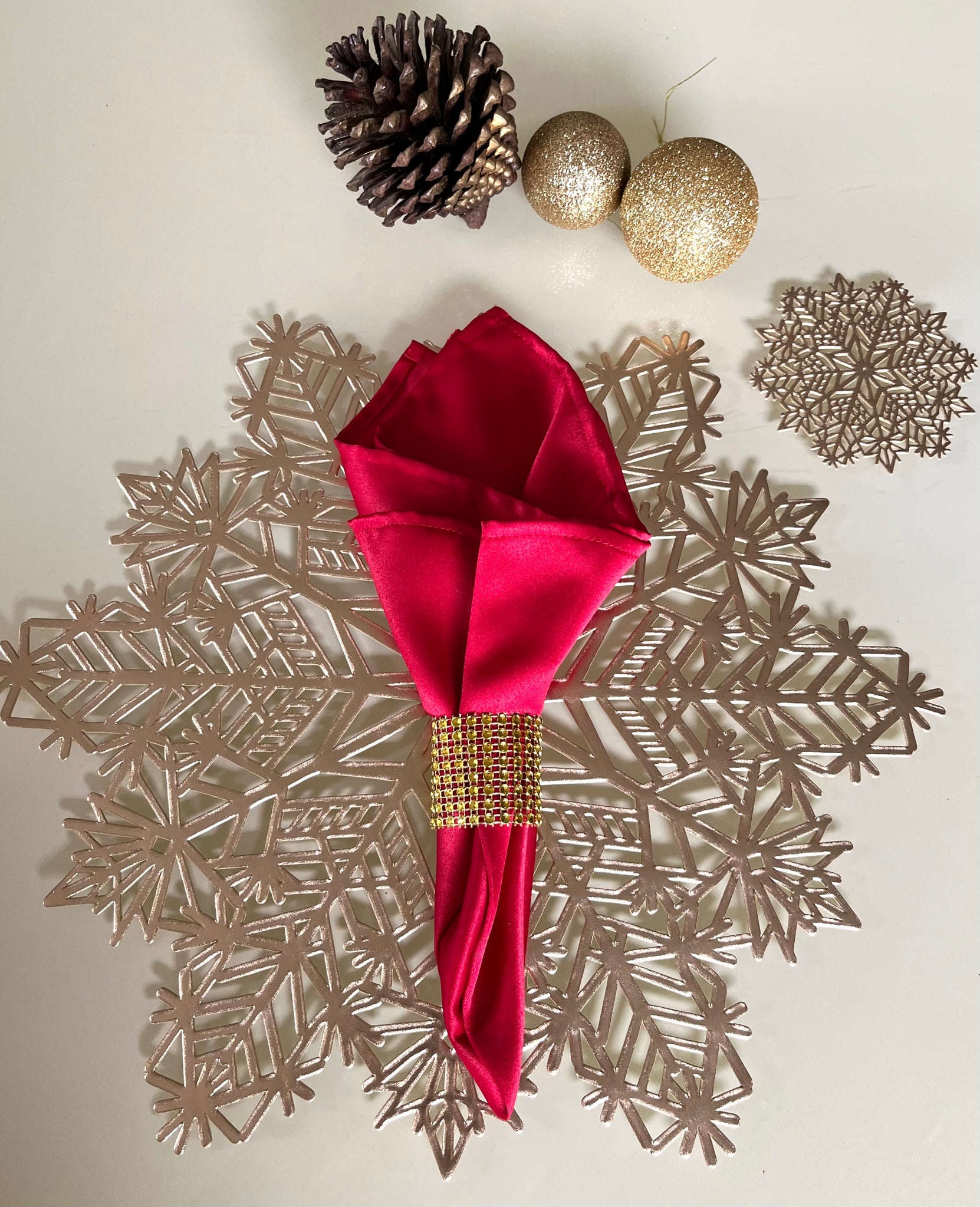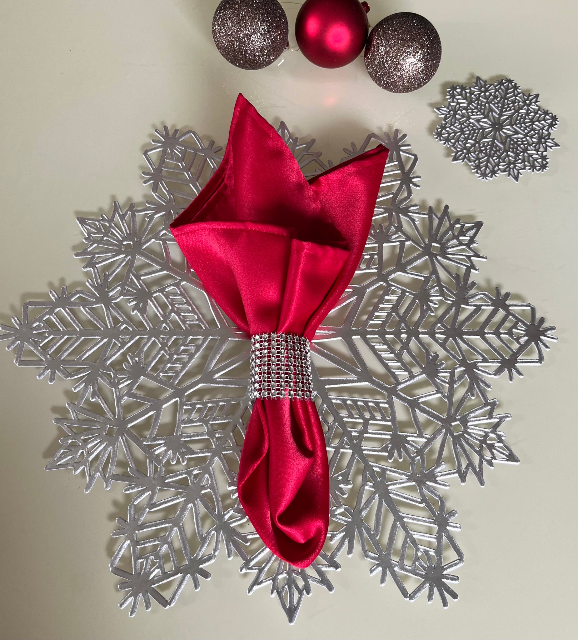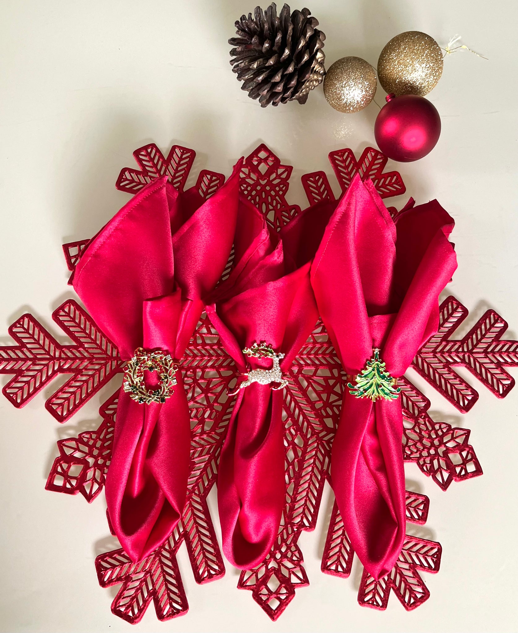 Juego de 6 servilletas rojas en Jaquard de seda , medida 45x45