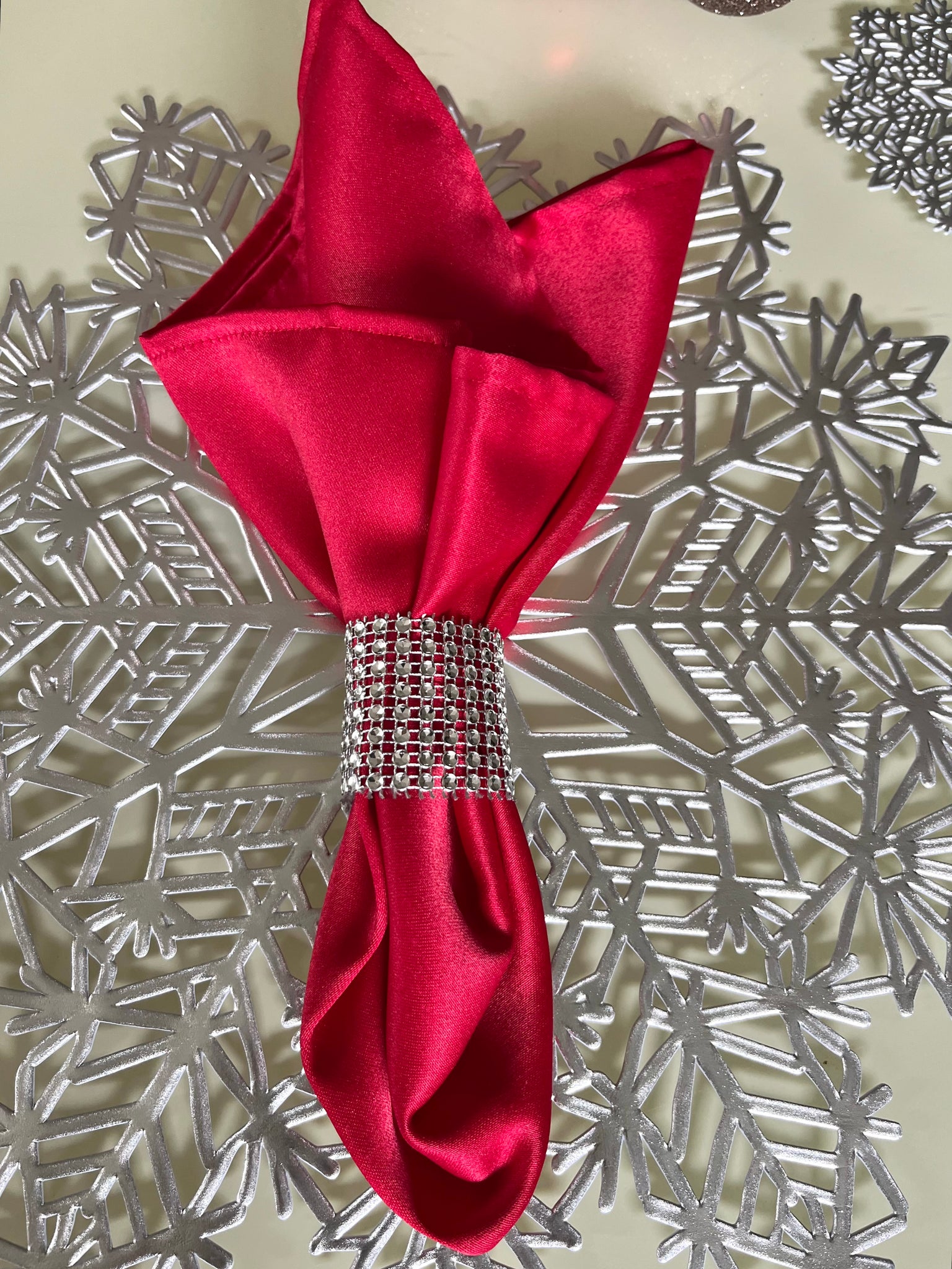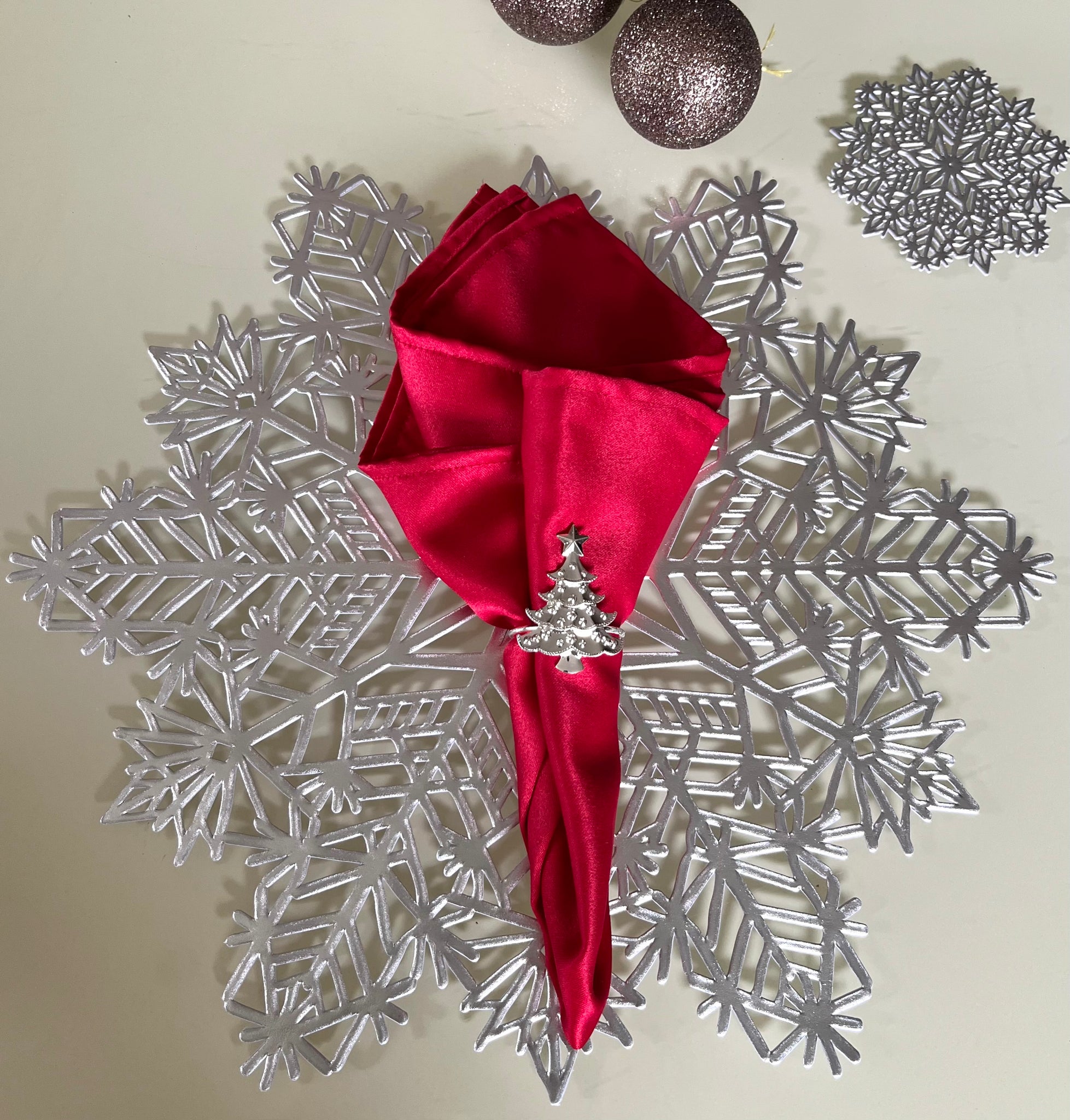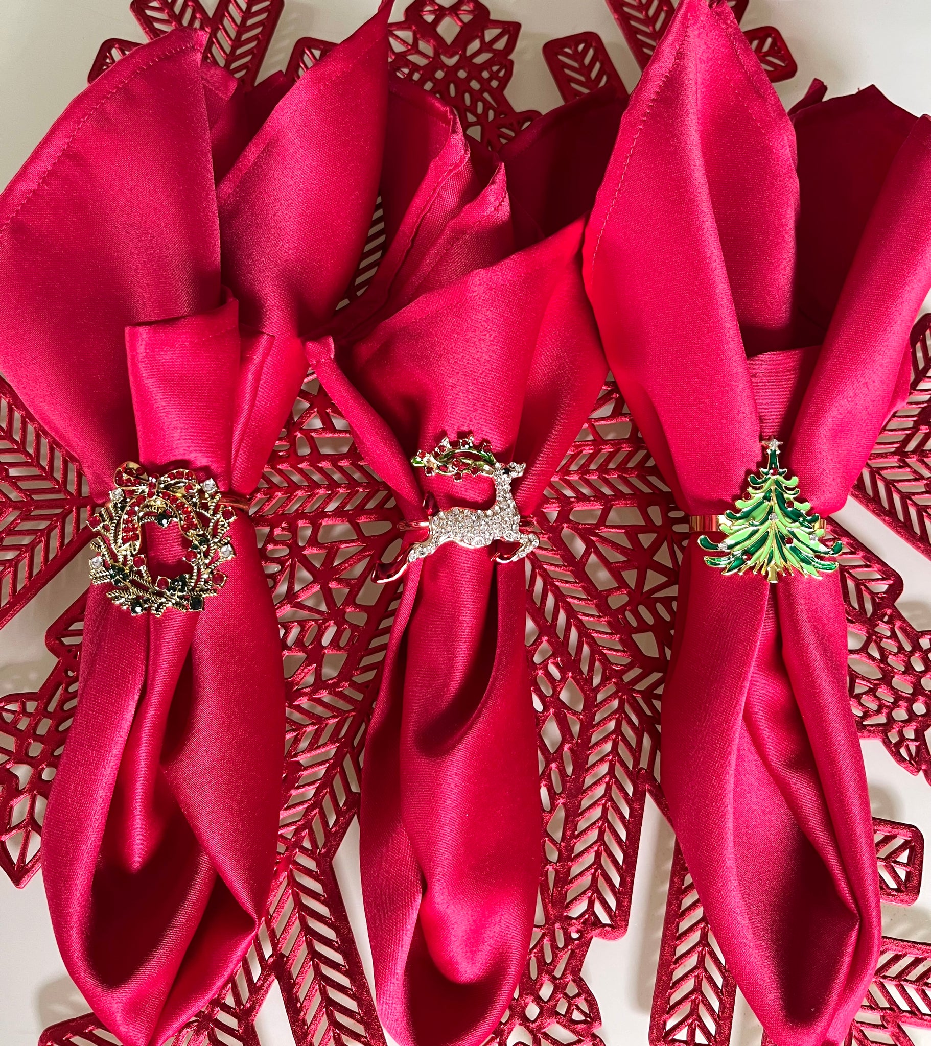 Juego de 6 servilletas rojas en Jaquard de seda , medida 45x45