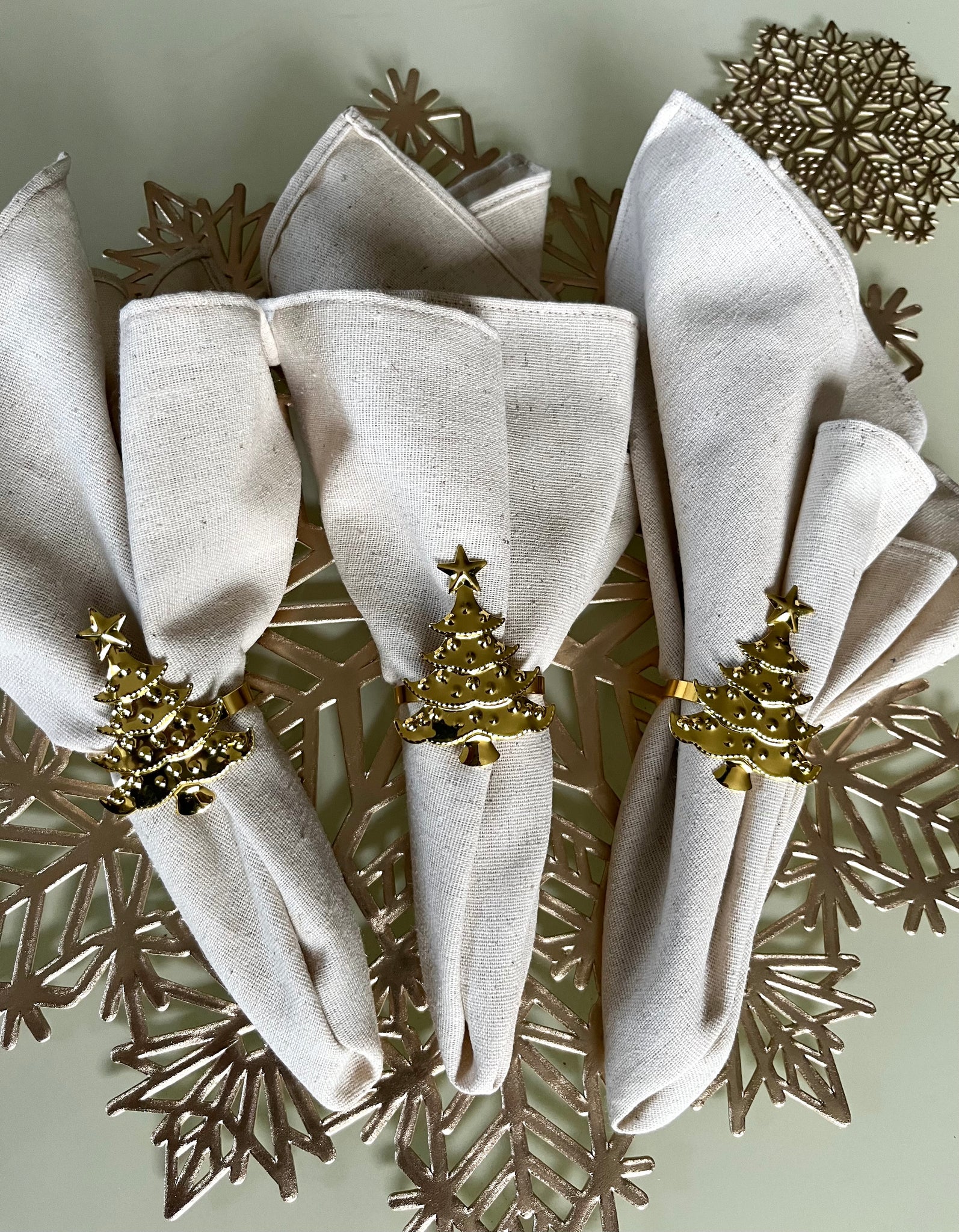 Juego de 6 servilleteros dorados de arbolito.